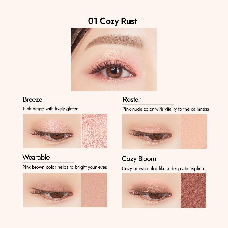 - Practical Hue Options: 01 Cozyrust, a peachy pink tone for a sophisticated touch, and 02 Flatbrown, an earthy tone perfect for everyday casual glamour.